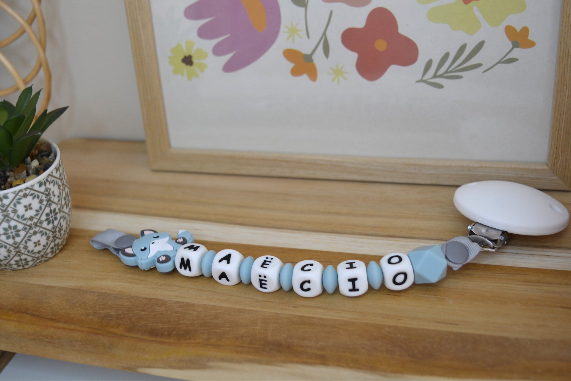 Elle se distingue par ses perles originales (renard, fleurs, etc.) et son clip plus grand, spécialement conçu pour répondre aux normes jouet tout en étant confortable et sécurisé pour bébé.